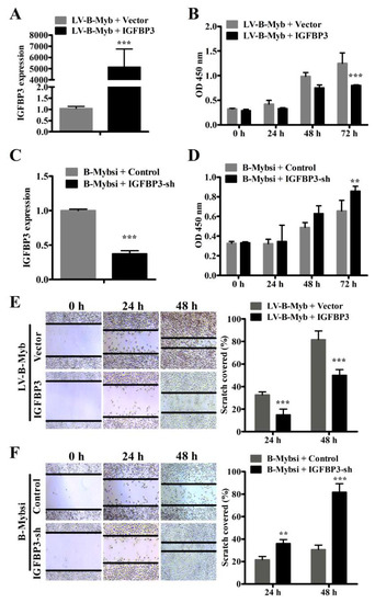 2.6. B-Myb Promotes Cell Proliferation and Migration by Targeting IGFBP3 in NSCLC Cells