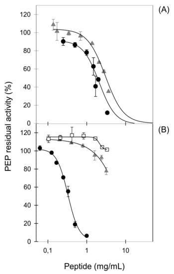 10]. Most of the PEP-inhibitory peptides derived from natural sources described to date contain at least one and up to six P residues in their sequences, and from 3 to 18 amino acid residues in length [