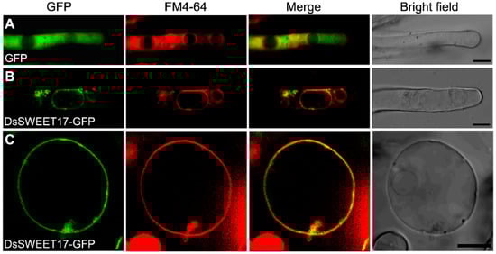 2.2. Expression and Subcellular Localization of DsSWEET17