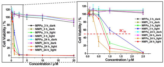 3.3.1. MTT Assay According to Concentration of Photosensitizer