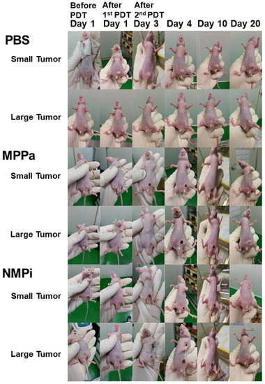 2.3. In Vivo Photodynamic Therapeutic Efficacy