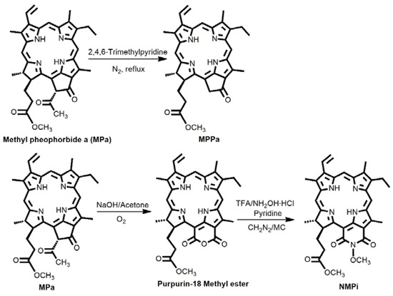 - Cui, B.C.; Yoon, I.; Li, J.; Lee, W.K.; Shim, Y.K. Synthesis and characterization of novel purpurinimides as photosensitizers for photodynamic therapy. Int. J. Mol. Sci. 2014, 15, 8091–8105. [Google Scholar] [CrossRef] [PubMed]