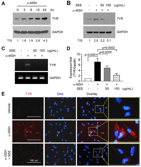 2.1. SEE Inhibits α-MSH-Induced TYR Expression