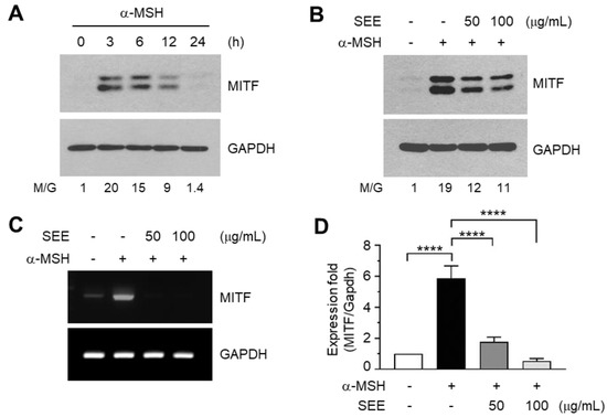 2.3. SEE Downregulates α-MSH-Induced MITF Expression