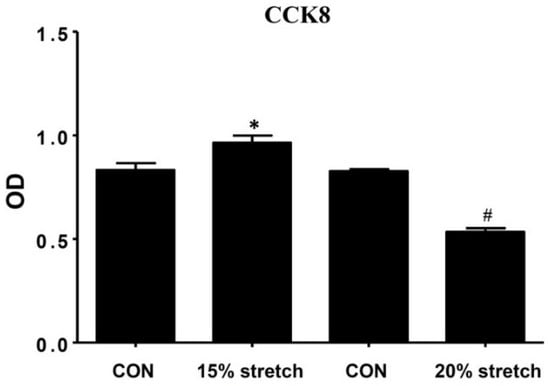 2.1. Effects of Cyclic Mechanical Stretch on the Proliferation of L6 Myoblasts