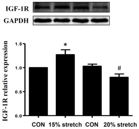 Fu, S.; Yin, L.; Lin, X.; Lu, J.; Wang, X. Effects of Cyclic Mechanical Stretch on the Proliferation of L6 Myoblasts and Its Mechanisms: PI3K/Akt and MAPK Signal Pathways Regulated by IGF-1 Receptor. Int. J. Mol. Sci. 2018, 19, 1649. https://doi.org/10.3390/ijms19061649