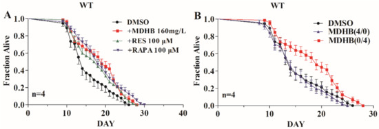 We previously reported that MDHB has antioxidant, neurotrophic, and neuroprotective effects [9,10,11,12]. Besides, MDHB extends the lifespan of C. elegans [13]. However, the mechanism by which MDHB extends lifespan remains hard to determine. The studies described here were aimed at exploring the exact mechanisms of lifespan-extending activity of MDHB in C. elegans.