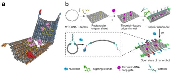 - Li, S.; Jiang, Q.; Liu, S.; Zhang, Y.; Tian, Y.; Song, C.; Wang, J.; Zou, Y.; Anderson, G.J.; Han, J.-Y.; et al. A DNA nanorobot functions as a cancer therapeutic in response to a molecular trigger in vivo. Nat. Biotechnol. 2018, 36, 258–264. [Google Scholar] [CrossRef] [PubMed]