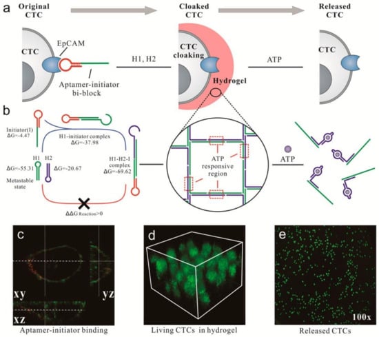 - Song, P.; Ye, D.; Zuo, X.; Li, J.; Wang, J.; Liu, H.; Hwang, M.T.; Chao, J.; Su, S.; Wang, L.; et al. DNA hydrogel with aptamer-toehold-based recognition, cloaking, and decloaking of circulating tumor cells for live cell analysis. Nano Lett. 2017, 17, 5193–5198. [Google Scholar] [CrossRef] [PubMed]