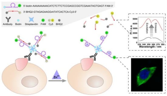 - Chen, X.; Zhao, J.; Chen, T.; Gao, T.; Zhu, X.; Li, G. Nondestructive analysis of tumor-associated membrane protein integrating imaging and amplified detection in situ based on dual-labeled DNAzyme. Theranostics 2018, 8, 1075–1083. [Google Scholar] [CrossRef] [PubMed]