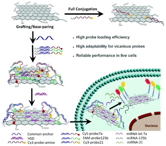 - Yu, J.; He, S.; Shao, C.; Zhao, H.; Li, J.; Tian, L. A common anchor facilitated go-DNA nano-system for multiplex microRNA analysis in live cells. Nanoscale 2018, 10, 7067–7076. [Google Scholar] [CrossRef] [PubMed]