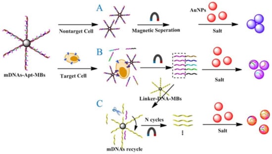 - Yu, T.; Dai, P.P.; Xu, J.J.; Chen, H.Y. Highly sensitive colorimetric cancer cell detection based on dual signal amplification. ACS Appl. Mater. Interfaces 2016, 8, 4434–4441. [Google Scholar] [CrossRef] [PubMed]