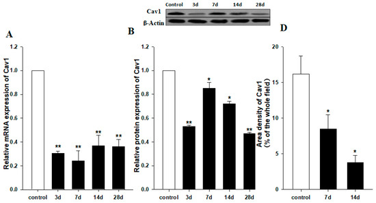 2.1. Downregulation of Cav1 after CCl4 Injection
