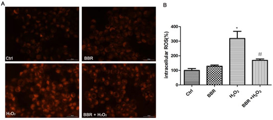 2.4. BBR Attenuated the H2O2-Induced ROS Production
