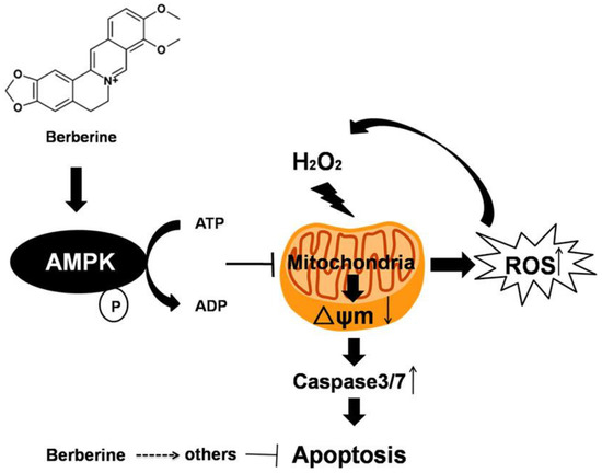 - Li, W.; Liu, Y.; Wang, B.; Luo, Y.; Hu, N.; Chen, D.; Zhang, X.; Xiong, Y. Protective effect of berberine against oxidative stress-induced apoptosis in rat bone marrow-derived mesenchymal stem cells. Exp. Ther. Med. 2016, 12, 4041–4048. [Google Scholar] [CrossRef] [PubMed]