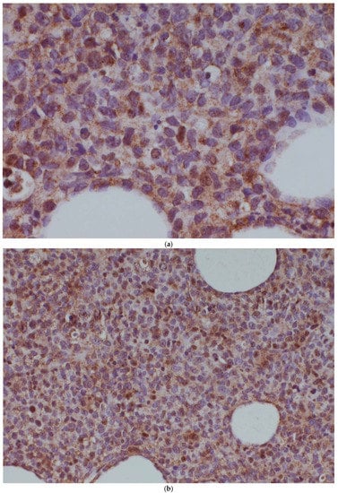 - Swerdlow, S.H.; Campo, E.; Pileri, S.A.; Harris, N.L.; Stein, H.; Siebert, R.; Advani, R.; Ghielmini, M.; Salles, G.A.; Zelenetz, A.D.; et al. The 2016 revision of the World Health Organization classification of lymphoid neoplasms. Blood 2016, 127, 2375–2390. [Google Scholar] [CrossRef] [PubMed]