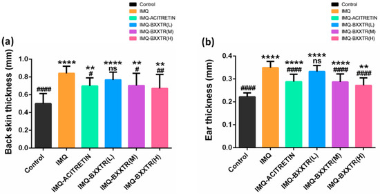 Pang, X.; Zhang, K.; Huang, J.; Wang, H.; Gao, L.; Wang, T.; Sun, Y.; Chen, L.; Wang, J. Decryption of Active Constituents and Action Mechanism of the Traditional Uighur Prescription (BXXTR) Alleviating IMQ-Induced Psoriasis-Like Skin Inflammation in BALB/c Mice. Int. J. Mol. Sci. 2018, 19, 1822. https://doi.org/10.3390/ijms19071822
