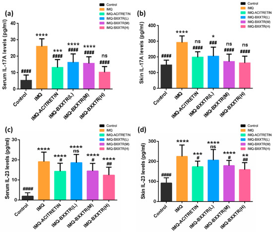 4.7. Measurement of IL-17A and IL-23 in Skin and Serum by ELISA