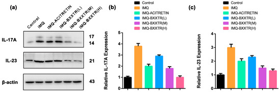 2.5. BXXTR Could Decrease of IL-17A and IL-23 Levels in the Back Skin of BALB/c Mice