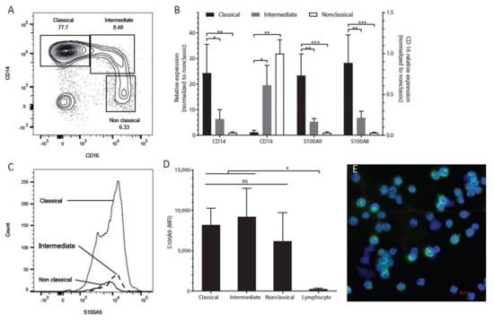 2.1. S100A9 is Mostly Expressed in CD14-Positive (Classical) Monocytes