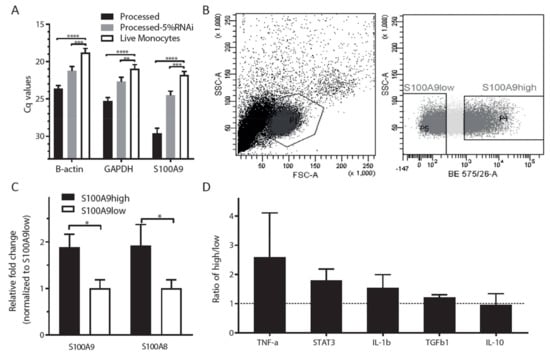 2.2. S100A9 Expression Varies within the CD14+ Monocyte Population