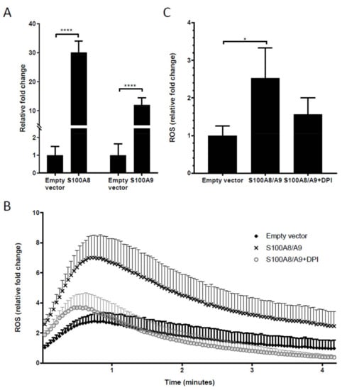 4.8. Overexpression of S100A8/A9 and Measurement of ROS and Cytokines