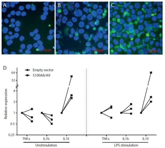 Yang, J.; Anholts, J.; Kolbe, U.; Stegehuis-Kamp, J.A.; Claas, F.H.J.; Eikmans, M. Calcium-Binding Proteins S100A8 and S100A9: Investigation of Their Immune Regulatory Effect in Myeloid Cells. Int. J. Mol. Sci. 2018, 19, 1833. https://doi.org/10.3390/ijms19071833