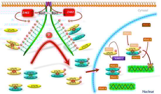 - Leonard, W.J. Role of Jak kinases and STATs in cytokine signal transduction. Int. J. Hematol. 2001, 73, 271–277. [Google Scholar] [CrossRef] [PubMed]