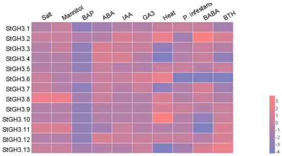 3.7. Expression Analysis of the StGH3 Genes