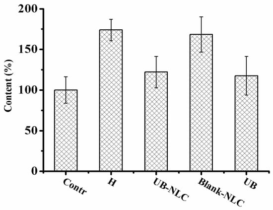 2.5. Effect of UB-NLC on the Activity of Superoxide Dismutase (SOD) and Glutathione Peroxidase (GSH-PX)
