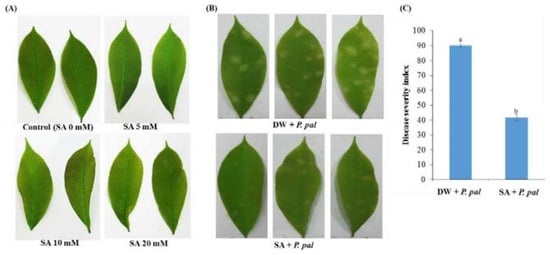2.1.1. Induced Resistance of SA-Pretreated Rubber Tree against P. palmivora
