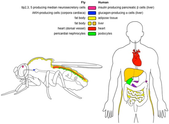 - Graham, P.; Pick, L. Drosophila as a Model for Diabetes and Diseases of Insulin Resistance. Curr. Top. Dev. Biol. 2017, 121, 397–419. [Google Scholar] [CrossRef] [PubMed]