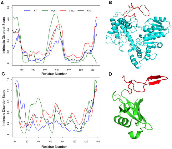 - Xue, B.; Dunbrack, R.L.; Williams, R.W.; Dunker, A.K.; Uversky, V.N. PONDR-FIT: A meta-predictor of intrinsically disordered amino acids. Biochim. Biophys. Acta 2010, 1804, 996–1010. [Google Scholar] [CrossRef] [PubMed]