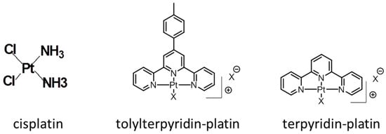 - Cummings, S.D. Platinum complexes of terpyridine: Interaction and reactivity with biomolecules. Coord Chem. Rev. 2009, 253, 1495–1516. [Google Scholar] [CrossRef]