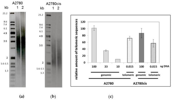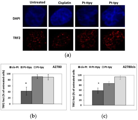 - Ishibashi, T.; Lippard, S.J. Telomere loss in cells treated with cisplatin. Proc. Natl. Acad. Sci. USA 1998, 95, 4219–4223. [Google Scholar] [CrossRef] [PubMed]