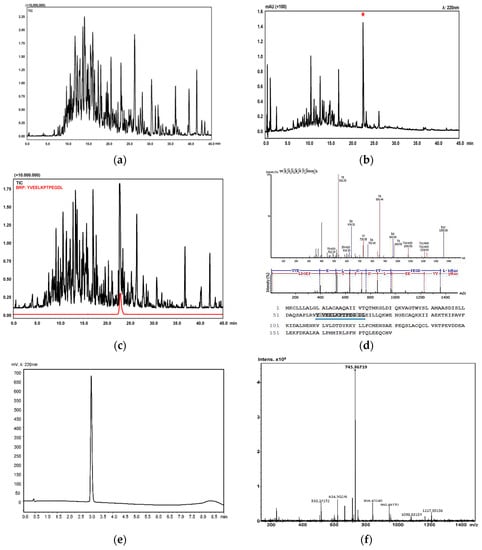 - Capriotti, A.L.; Cavaliere, C.; Piovesana, S.; Samperi, R.; Laganà, A. Recent trends in the analysis of bioactive peptides in milk and dairy products. Anal. Bioanal. Chem. 2016, 408, 2677–2685. [Google Scholar] [CrossRef] [PubMed]