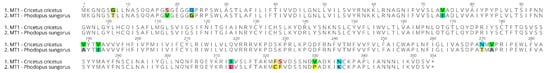 4.4. Cloning of the Cricetus cricetus MT1 Gene