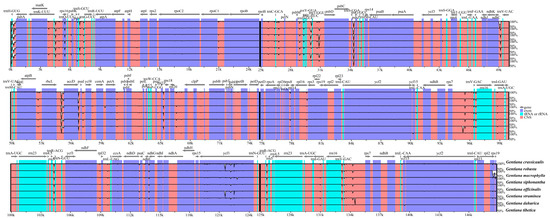 - Ni, L.; Zhao, Z.; Xu, H.; Chen, S.; Dorje, G. Chloroplast genome structures in Gentiana (Gentianaceae), based on three medicinal alpine plants used in Tibetan herbal medicine. Curr. Genet. 2017, 63, 241–252. [Google Scholar] [CrossRef] [PubMed]