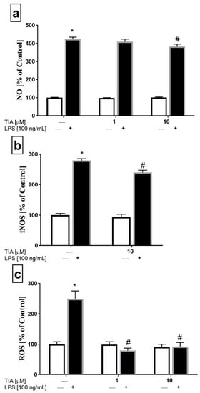 2.3. Tianeptine Diminishes NO Production, As Well As iNOS and ROS Levels in LPS-Stimulated Microglial Cells
