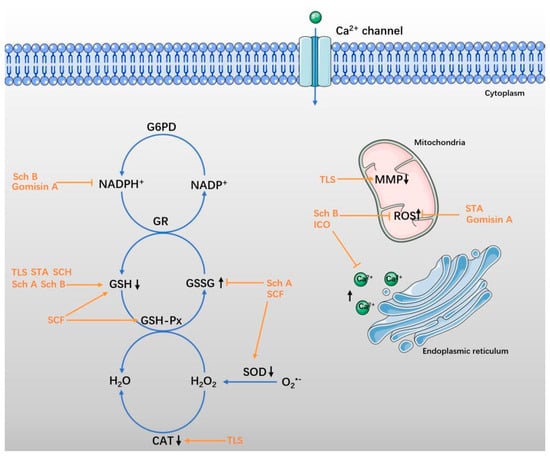 ICO isolated from SCF showed an antioxidative effect on 6-OHDA-induced human neuroblastoma SH-SY5Y cell (a human derived cell line used as in vitro models of neuronal function and differentiation) death, inhibiting ROS and calcium accumulation. Additionally, ICO stimulated the expression of the antioxidant response genes NQO1 and HO-1 (see Section 5.4 for more detail) []. Moreover, gomisin A inhibited the ROS production, NADPH oxidase activation, and gp91phox expression induced by lipopolysaccharide (LPS) in microglia (see Section 6.3 for more detail) [].