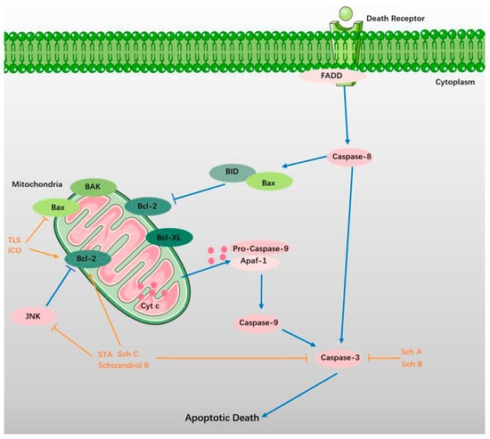 As Sa et al. reported, STA pretreatment inhibited 1-methyl-4-phenylpyridinium ion (MPP+)-induced cytotoxicity in SH-SY5Y cells and 1-methyl-4-phenyl-1,2,3,6-tetrahydropyridine (MPTP)-induced the loss of TH-positive dopaminergic neurons in PD mice. The mechanism was suggested to increase cAMP-response element binding protein (CREB)-mediated Bcl-2 expression and activate PI3K/Akt signaling []. In addition, STA, Sch C, and Schizandrol B showed beneficial effects in preventing serum and glucose deprivation (SGD) injury. Overexpressed proteins related to apoptosis were regulated by these lignans [].