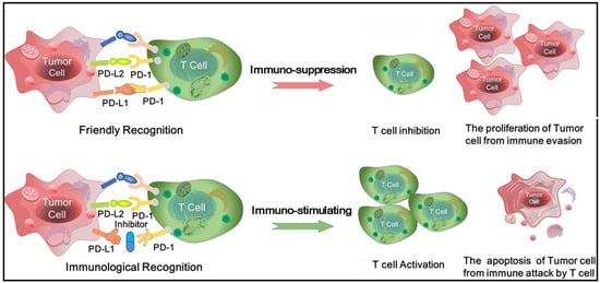 Cancer has become one of the major threats to human life and health []. According to the 2014 report of the International Agency for Research on Cancer (IARC), about 1.4 million new cancer patients were added from 2008 to 2012 and it was estimated that the number of cancer cases will increase to 25 million in the next 20 years []. Currently, the primary methods for cancer treatment are surgical resection, radiotherapy, chemotherapy, immunotherapy and so on [,,,]. Surgical resection temporarily removes the lesion, which cannot be completely removed due to the strong metastatic characteristic of tumor cells. Radiotherapy and chemotherapy both kill tumor cells accompanied by accidentally injuring normal cells associated with the poor targeting, being prone to drug resistance. Immunotherapy targets are not cancer cells but the body’s immune system, such as immune checkpoint molecules, which is different from the traditional treatment strategy. The particularity of the target growth environment can effectively decrease the side effects of drugs. Extensive tests [] demonstrated that immunotherapy enhances overall survival of patients. In 2013, Science Journal listed tumor immunotherapy as “Annual-Top Ten Scientific Breakthroughs []”.