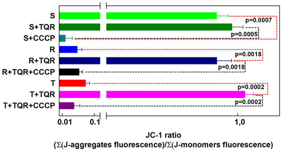 2.2. Measurement of JC-1 Fluorescence in S, R and T Cells by Fluorescence Cytometry