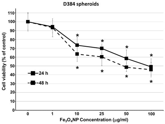 2.2. Short-Term Exposure: Cytotoxicity Results after Single-Dose Treatment with Fe3O4NPs