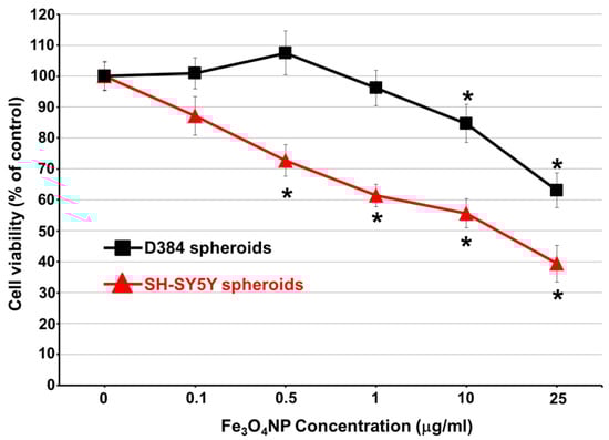 - Coccini, T.; Caloni, F.; Ramírez Cando, L.J.; De Simone, U. Cytotoxicity and proliferative capacity impairment induced on human brain cell cultures after short- and long-term exposure to magnetite nanoparticles. J. Appl. Toxicol. 2017, 37, 361–373. [Google Scholar] [CrossRef] [PubMed]