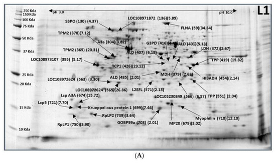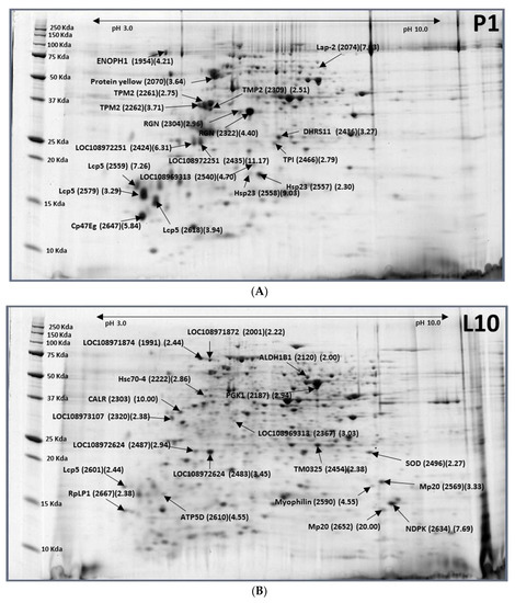 | Accession No. | Protein Names (Abbreviations) | Spot ID (P1/L10 Ratio) |