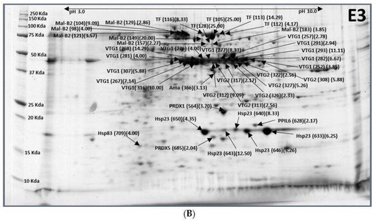 | Accession # | Protein Names (Abbreviations) | Spot ID (L1/E3 Ratio) |