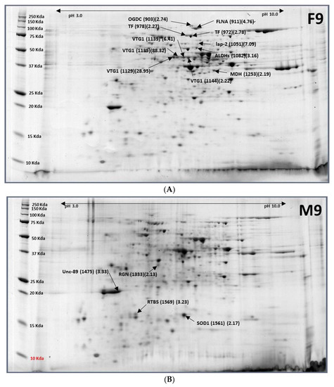 | Accession No. | Protein Name | Spot ID (F9/M9 Ratio) |