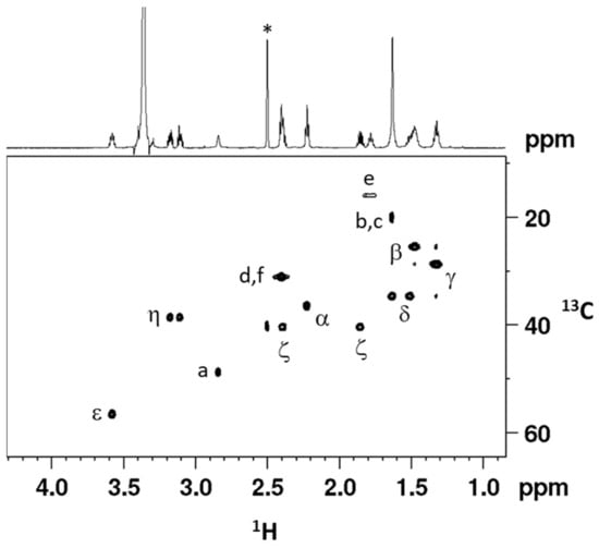 The assignment of 13C signals has been accomplished by a [1H, 13C]-HSQC 2D NMR spectrum (Figure 3) and data are reported in the Experimental Section.