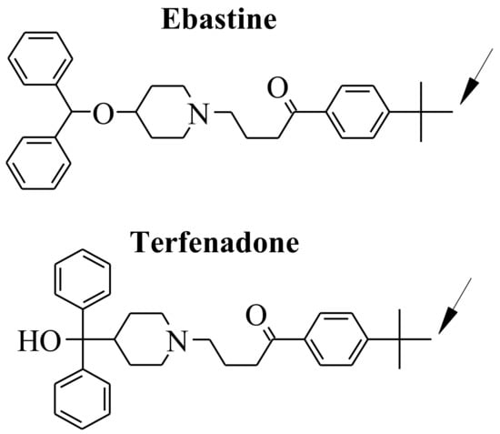 | Terfenadone 1 | Ph2(OH)C- | -CO- | --C(CH3)3 | 0.7 ± 0.1 | 1.6 ± 0.1 | 1.9 ± 0.2 | 1.0 ± 0.3 |